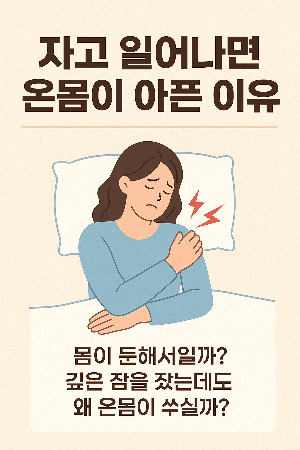 단순한 피로라고 생각하기 쉽지만, 사실은 수면 자세·근육 긴장·호르몬 변화·수면 질 저하 등 다양한 원인이 작용합니다.