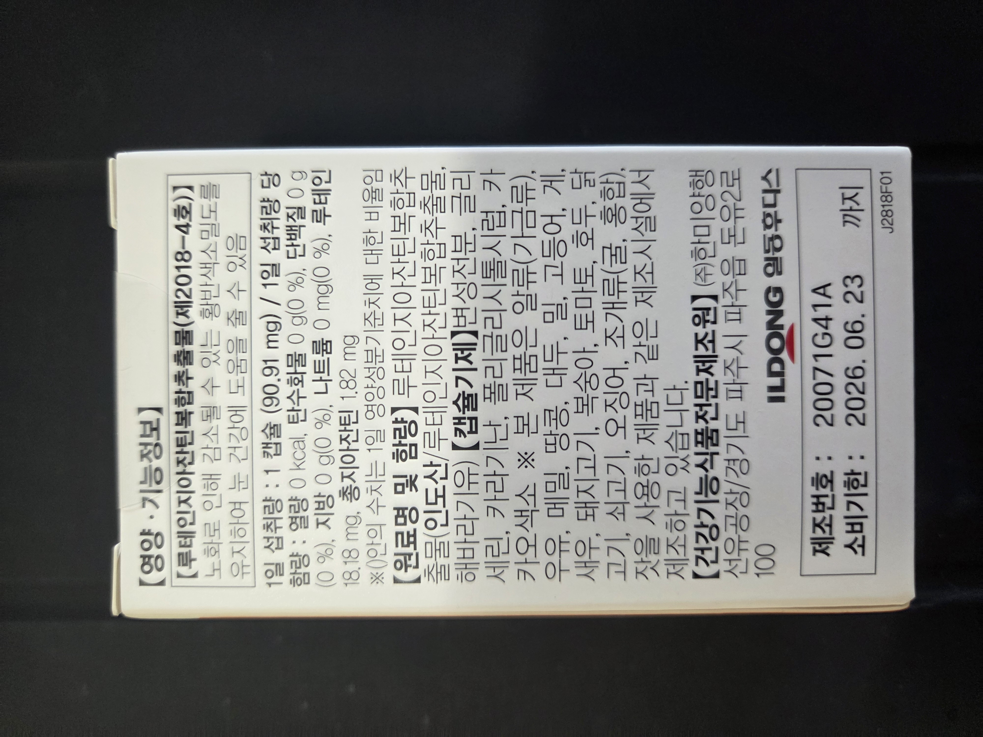 | 효능 | 눈 피로 완화, 블루라이트 차단, 황반 변성 예방 |